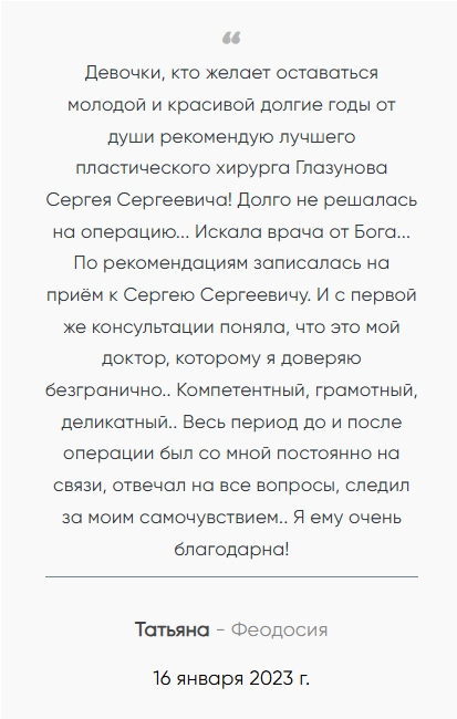 Отзывы пациентов о подтяжке живота у доктора Глазунова: