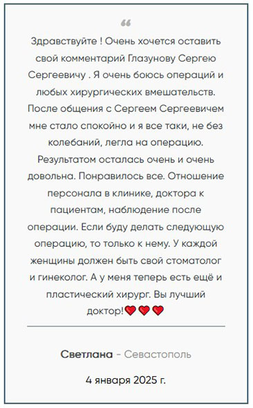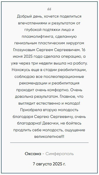 Отзывы пациентов об эндоскопической подтяжке лица у доктора Глазунова: